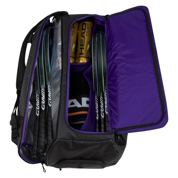 Head’s first tennis bag made with recycled PET bottles was developed in collaboration with Alexander Zverev, who believes “we should all take greater care of the planet.” The Head r-PET Gravity Duffel 12 Pack Racquet Bag is easy-to-customize, with adjustable dividers that attach to the clothes-friendly velcro tapes inside. Choose between storing all your kit in one huge compartment or separating the interior into several smaller compartments. There is plenty of space in a bag that can store up to 12 racquets, and which features a separate, ventilated shoe compartment and a CCT+ compartment that protects your racquets from high temperatures, as well as additional inside and outside accessory pockets.