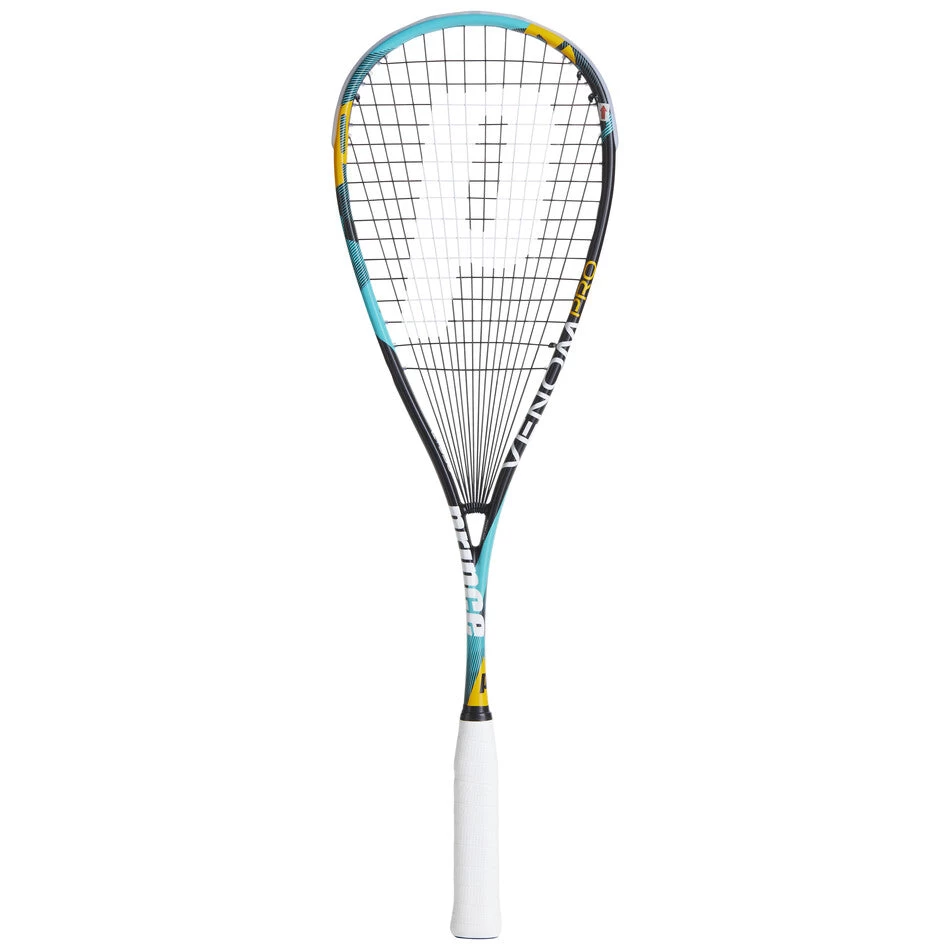 The Prince Venom Pro 950 has a new construction that is reinforced with TeXtreme & Twaron. Improved hoop strength and head crunch, doubled standards for impact strength requirements. Prince Venom Pro 950 Squash Racket is an elite performance racket designed for power and control. The Power Ring technology is an inverted ‘ring’ in the throat of the frame that creates longer main strings of uniform length, for enhanced power across the entire string bed. A grommet less throat increases frame durability and stiffness. Prince’s patented O3 ports at 12, 3 and 9 o’clock significantly reduce aerodynamic drag increasing swing speed by 24% and enlarging sweet spot size by up to 59%.