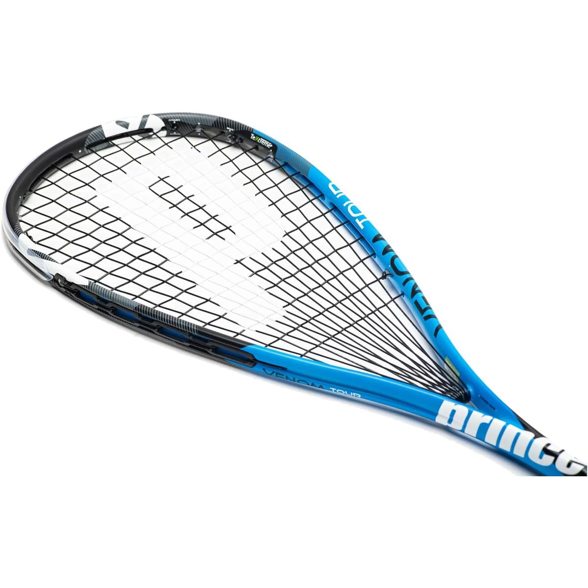 The Prince Venom Tour 975 has a new construction that is reinforced with TeXtreme & Twaron. Improved hoop strength and head crunch, doubled standards for impact strength requirements. Prince Venom Tour 975 Squash Racquet is an elite performance racquet designed for power and control. The Power Ring technology is an inverted ‘ring’ in the throat of the frame that creates longer main strings of uniform length, for enhanced power across the entire string bed. A grommet less throat increases frame durability and stiffness. Prince’s patented O3 ports at 12, 3 and 9 o’clock significantly reduce aerodynamic drag increasing swing speed by 24% and enlarging sweet spot size by up to 59%.