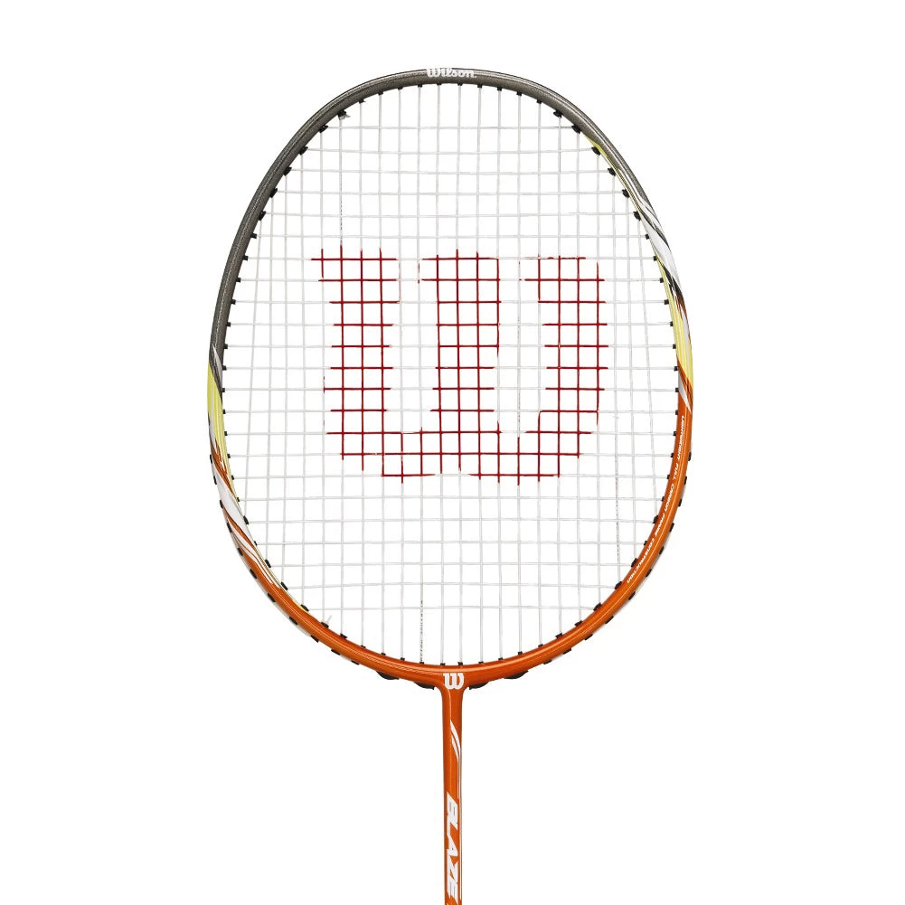 The Wilson Blaze 300 Badminton Racquet features an increased hitting zone thanks to the Quad Head Shape as well as a Thumb Pad top cap that allows players to place their thumb at the top of the grip for great feel.