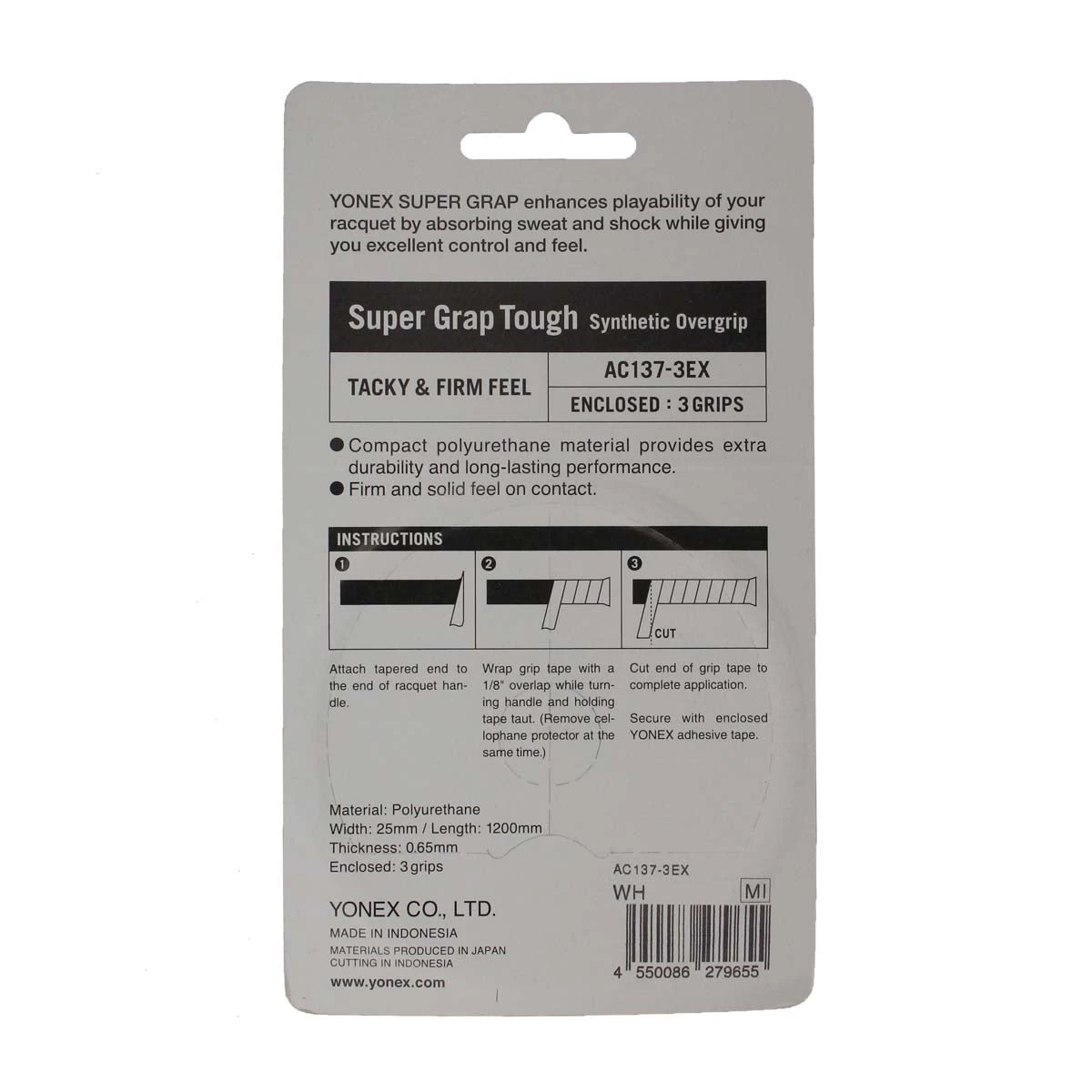 Yonex Super Grap Tough Overgrip 3 Pack (White) Details: